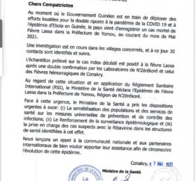 Dans une déclaration, le ministre de la Santé a annoncé lundi l’apparition de la fièvre Lassa à Yomou, au sud de la Guinée…...