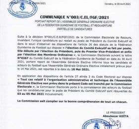 L’assemblée élective de la féguifoot est désormais renvoyée pour le 18 mai 2021. Lire ci-dessous la décision de la commission...
