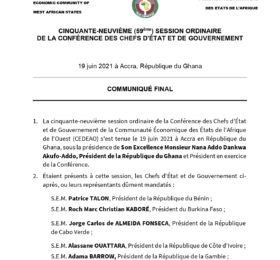 A l’invitation du président ghanéen Nana Akufo-Addo, les chefs d’État et de gouvernement de la Cedeao, réunis en session ordinaire...