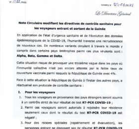 Face à l’évolution épidémiologiques de la Covid-19, la Guinée à travers l’ANSS a durci les mesures d’entrée et de sortie du...