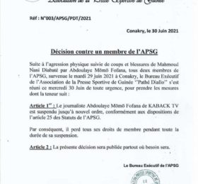 Abdoulaye Momo Fofana, journaliste sportif à Kaback TV suspendu jusqu’à nouvel ordre par l’ASPSG