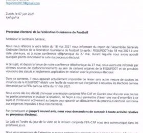 ZURICH– Dans un courrier adressé à la fédération guinéenne de Football ce lundi 7 juin, la FIFA a annoncé qu’elle va dépêcher...