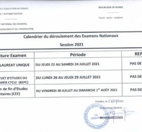 C’est connu. Les examens nationaux session 2021 débutent le 22 juillet prochain pour s’achever le 1er août. Le Ministère de...