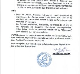Dans une lettre du Ministère en charge de la Santé transmise, ce mardi, par l’Agence Nationale de Sécurité Sanitaire, à travers sa...