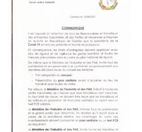 Dans un communiqué, le ministre d’Etat Tibou Kamara a demandé aux entreprises indutrielles et petites et moyennes entreprises...