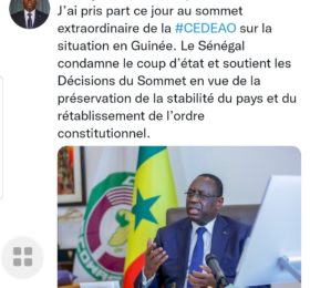 Macky Sall condamne le coup d’Etat en Guinée et dit soutenir les décisions de la Cedeao