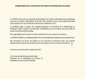 Dans un communiqué dont Mediaguinee détient copie, la Communauté économique des Etats de l’Afrique de l’Ouest (Cedeao) a condamné...