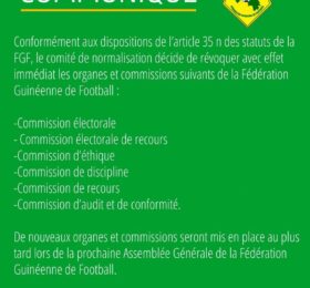 CONAKRY- Après le secrétaire général Maurice Akoi Koivogui qui a été limogé par le comité de normalisation de la Féguifoot, le...