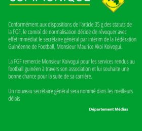 Fin d’un règne sur le football guinéen. Dans un communiqué, le comité de normalisation (CoNor) de la fédération guinéenne de...