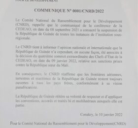 Dans un communiqué, le Comité national du rassemblement pour le développement (CNRD) a indiqué lundi que la Guinée -qui n’a pas...