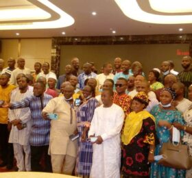 Le ministre en charge de l’Administration du Territoire et de la Décentralisation, Mory Condé, en compagnie de certains de ses cadres...