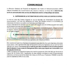 Le directeur général de l’Autorité de régulation des postes et télécommunications (ARPT) Sékou Oumar Barry a signé un important...