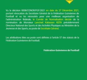 CONAKRY- Vacant jusqu’à ce jour, le poste de Secrétaire Général de la Fédération Guinéenne de Football trouve désormais preneur....