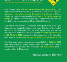 CONAKRY- Le comité de normalisation de la fédération guinéenne de Football annonce la fermeture du centre technique de Nongo. Dans un...
