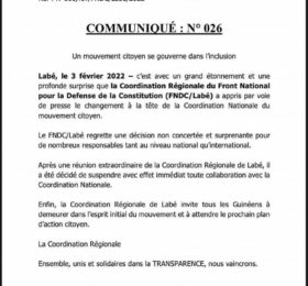 Depuis ce jeudi, 03 février, le FNDC, fer de lance de la lutte contre le 3ème mandat d’Alpha Condé a un nouveau coordinateur....