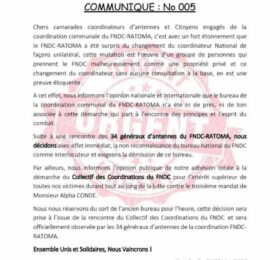 Changement de coordinateur au FNDC : la coordination de Ratoma ne reconnaît pas le bureau national et exige sa démission (communiqué)