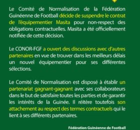 Syli : le CONOR suspend le contrat liant la Guinée à l’équipementier Masita