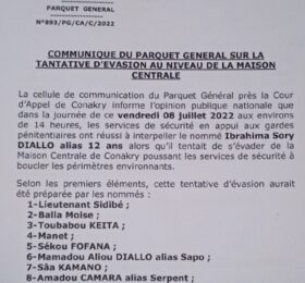 L’article Conakry. Une tentative d’évasion annoncée par le parquet général est apparu en premier sur Guinee7.com....
