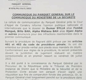 Le ton monte. Après le Procureur de Dixinn, c’est autour du Parquet Général près la Cour d’Appel de Conakry de rendre publc ce...