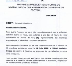 CONAKRY- Dans une lettre adressée au comité de normalisation de Fédération Guinéenne de Football, des membres statutaires ont émis le...