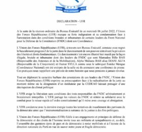 DÉCLARATION A la suite de la réunion ordinaire du Bureau Exécutif de ce mercredi 06 juillet 2022, l’Union des Forces Républicaines...