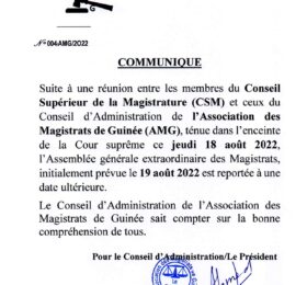 L’Assemblée générale extraordinaire des Magistrats initialement prévue ce vendredi est reportée à une date ultérieure. La...