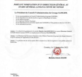 Stade Général Lansana Conté de Nongo : un nouveau Directeur Général nommé