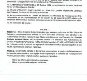 Fraude aux examens : le ministre Hawing sanctionne une école de Koloma pour un an