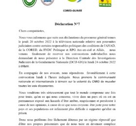 Des responsables politiques guinéens, au nombre de huit, ont cosigné une déclaration dans laquelle ils annoncent qu’ils répondront ce...