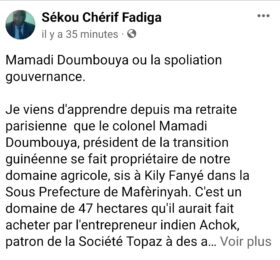 Domaine agricole du col. Doumbouya, à Fanyé : un « ayant-droit » parle de « spoliation »