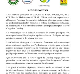 Le FNDC, mouvement dissout par les autorités actuelles de la Guinée, soutenu par les principales coalitions politiques a appelé à...