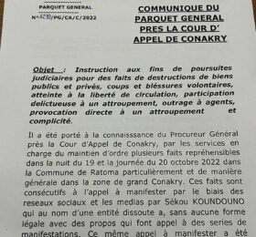 Suite à l’annonce du procureur général près la Cour d’appel de Conakry de poursuivre des politiques pour cause de violences dans le...