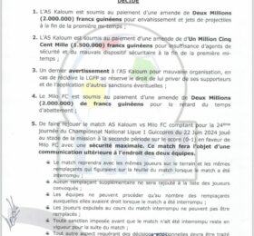 L’AS Kaloum et le Milo FC ont, tous les deux, été sanctionnés suite aux incidents qui ont émaillé leur match, le 21 juin dernier, au...
