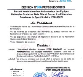 Fodé Mansaré nomme ambassadeur des équipes scolaires de Guinée (décision)