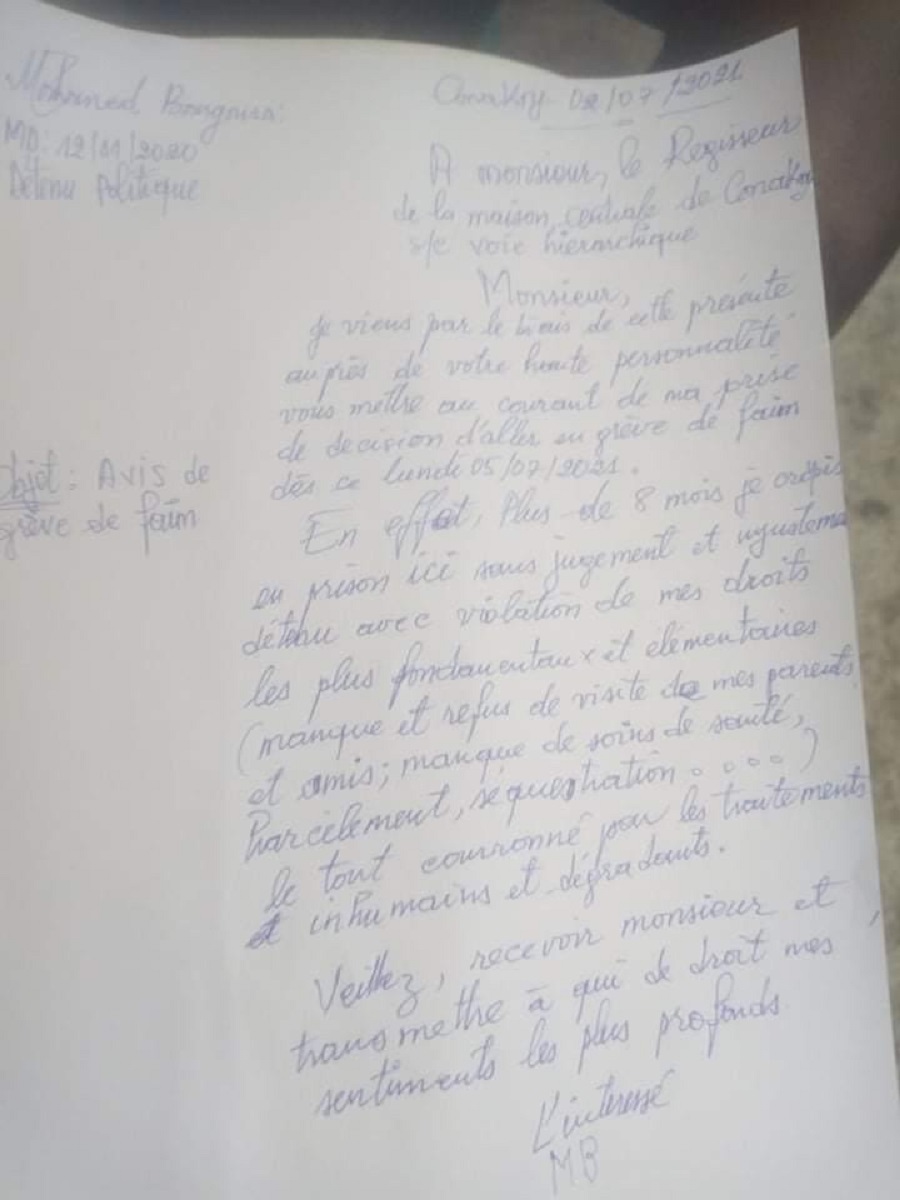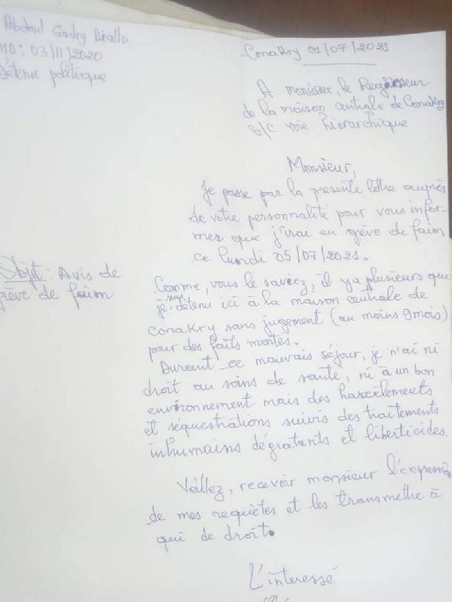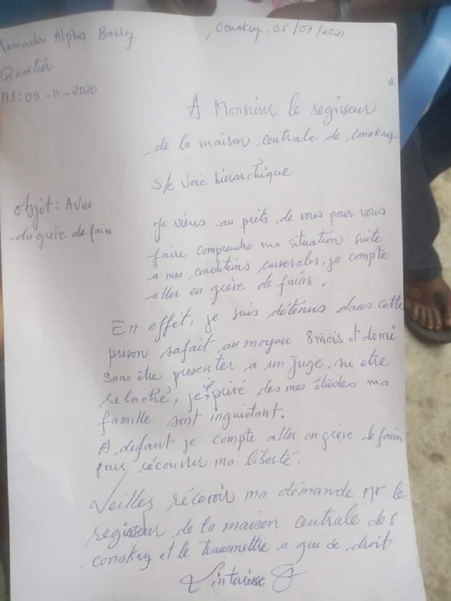 Plusieurs détenus à la maison centrale de Conakry ont entamé ce lundi, 5 juillet 2021, une grève collective de la faim. A travers des correspondances individuelles ‘’avis de grève de la faim’’ qu’ils ont adressé au régisseur de ladite prison, ces prisonniers dénoncent leur détention prolongée sans jugement.