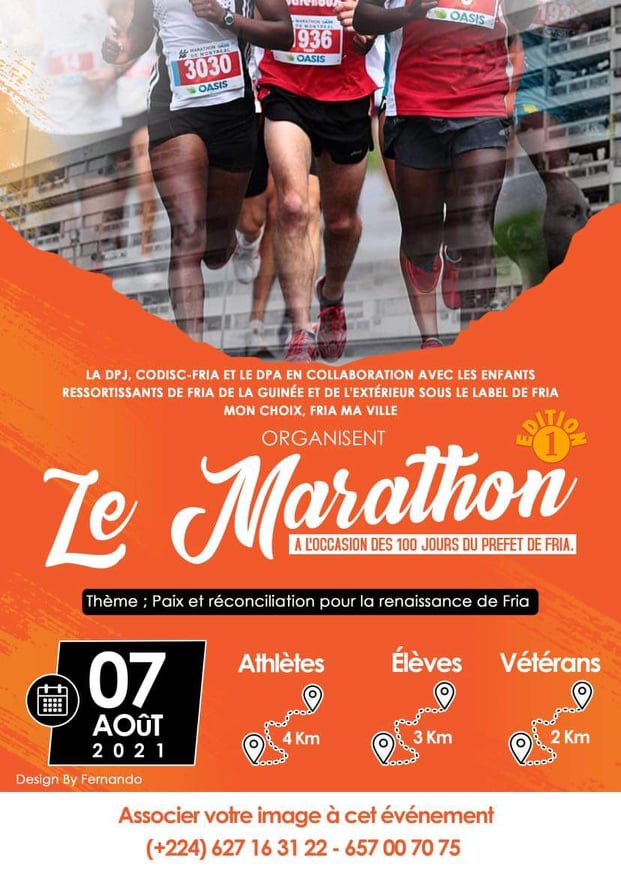 Le mouvement « Fria mon choix, Fria ma ville », organise un marathon en collaboration avec le Comité des districts et Clubs sportifs de Fria (CODISC-FRIA), et la Direction préfectorale de la jeunesse, de la culture et du patrimoine historique. Ce marathon, selon les organisateurs, est « la volonté des fils de Fria vivant en Guinée et de la diaspora mais aussi les amis et sympathisants de la ville qui ont lancé un appel pour saluer les 100 jours du nouveau préfet qui a posé les actes de développement de la ville de Fria dès sa prise de fonction ». Pour en savoir davantage, nous avons interrogé M. Mory Condé, président du Comité des districts et Clubs sportifs de Fria et coordinateur général dudit événement.