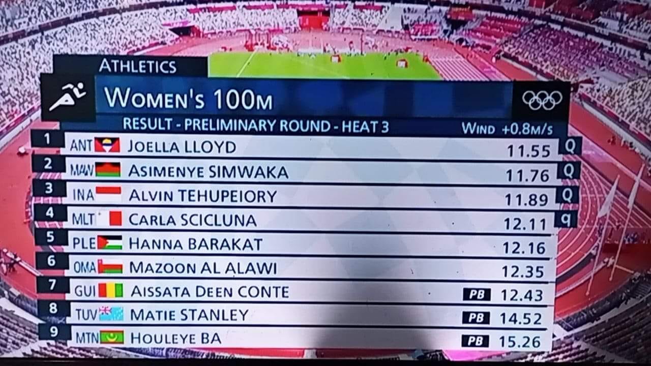 Aïssata Deen Conté, la représentante de la Guinée en athlétisme aux JO de Tokyo a couru la nuit d’hier dans la 3ème série des 100m dames, couloir 3 ; elle été 7ème avec un temps de 12″43 chrono électronique [Son score en Guinée est de 12” 2 ; « les chronos seraient différents », nous dit-on].
