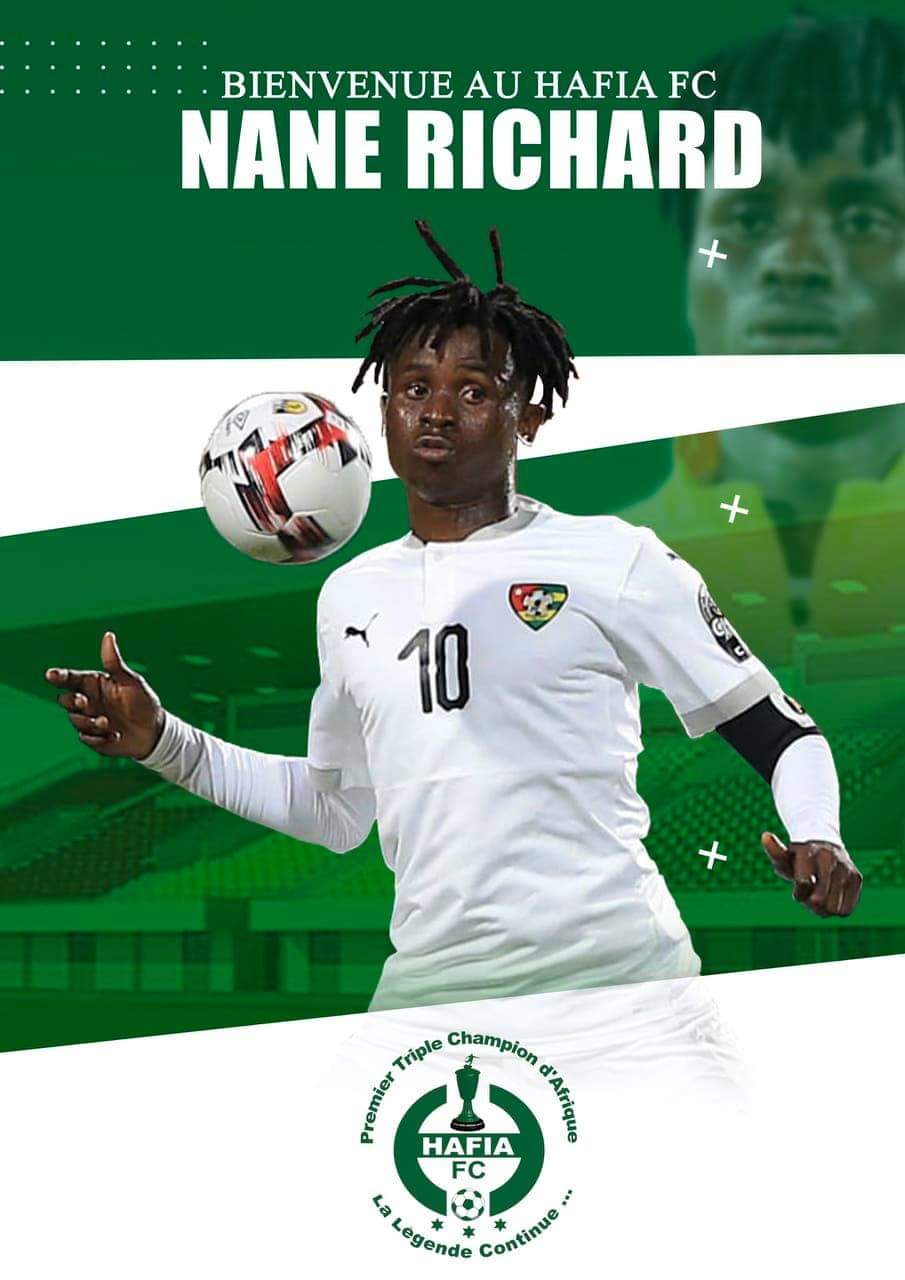 Si le montant du transfert n’a pas été dévoilé, comme cest d’ailleurs le cas en Guinée, le milieu de terrain offensif Togolais de 26 ans a signé un contrat de 2 saisons avec Hafia. Auteur d’un excellent CHAN 2020 au Cameroun avec le Togo, Richard NANE découvre pour la première fois l’étranger et la Ligue 1 de Guinée.