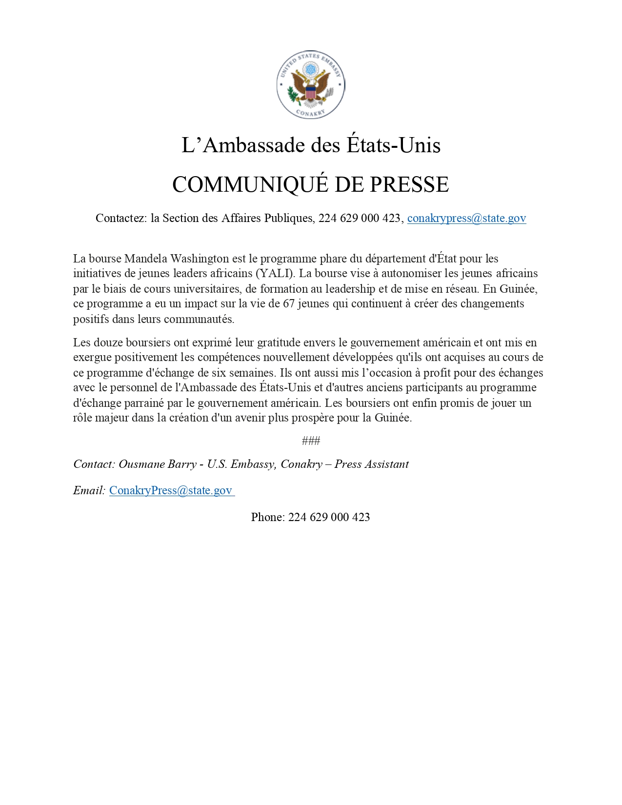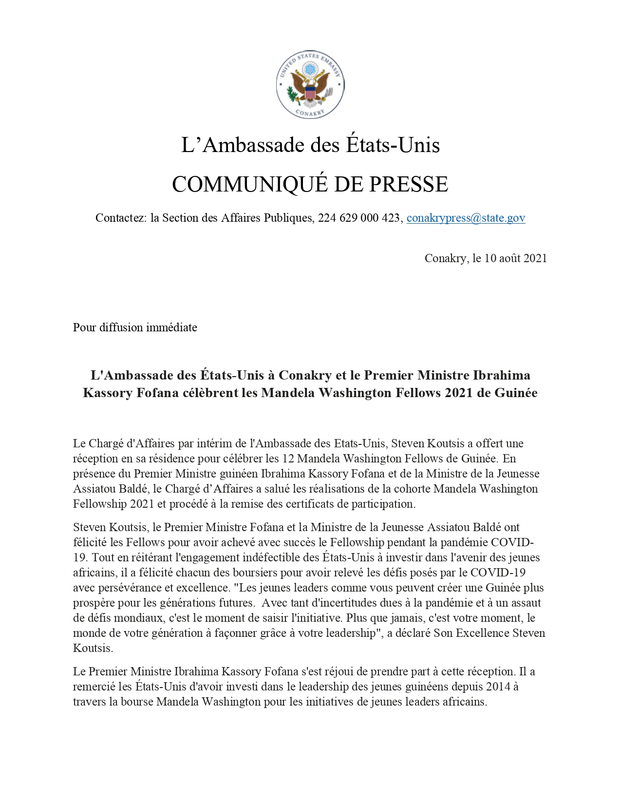 L’article L’Ambassade des États-Unis à Conakry et le Premier ministre célèbrent les Mandela Washington Fellows 2021 de Guinée est apparu en premier sur Mediaguinee.org.
