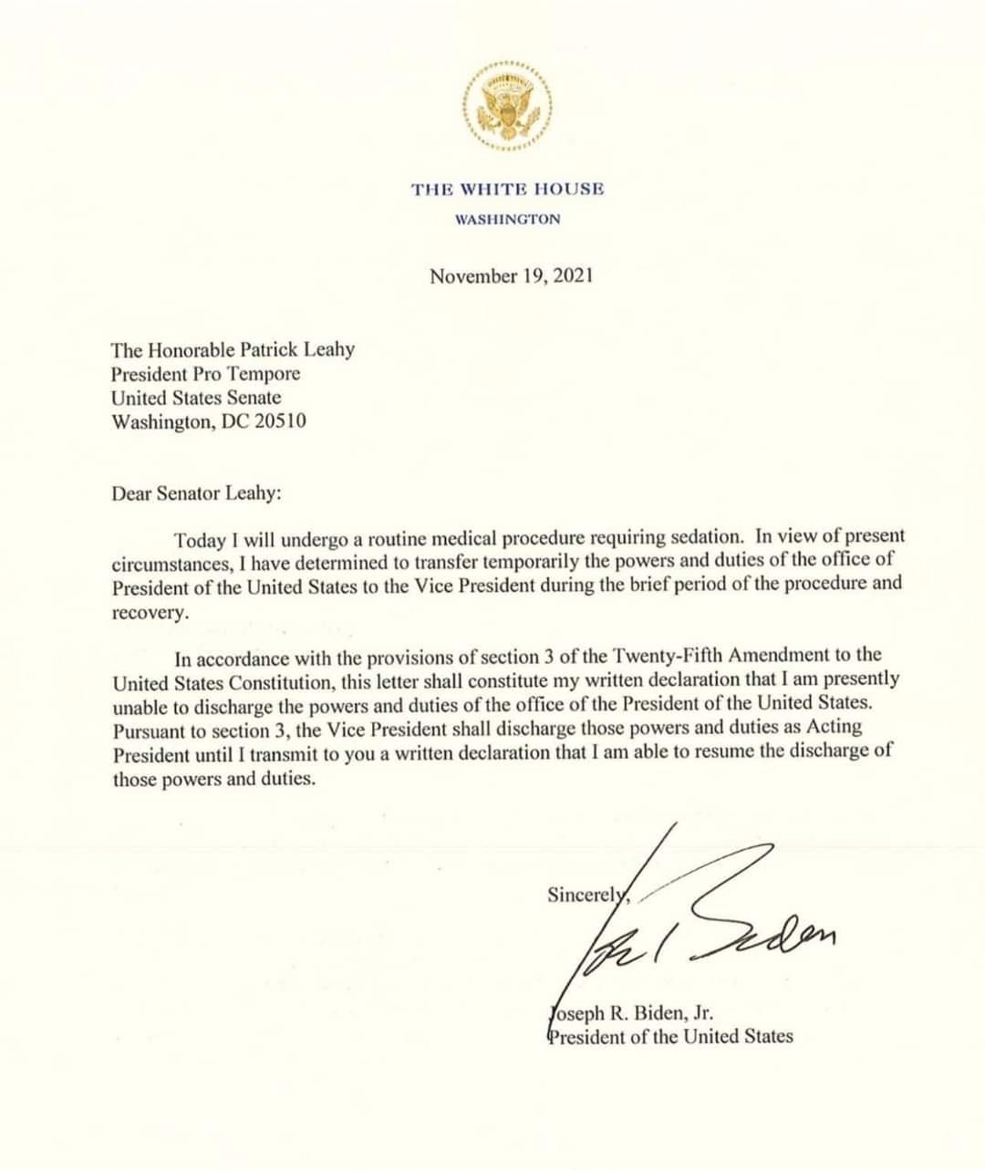 Joe Biden a repris à environ 16H35 GMT (17H35 HB) vendredi ses fonctions présidentielles, qu’il avait brièvement transférées à la vice-présidente Kamala Harris le temps d’une anesthésie, a indiqué la Maison Blanche. Le transfert de prérogatives de Biden à Harris a duré 1h25 au total.