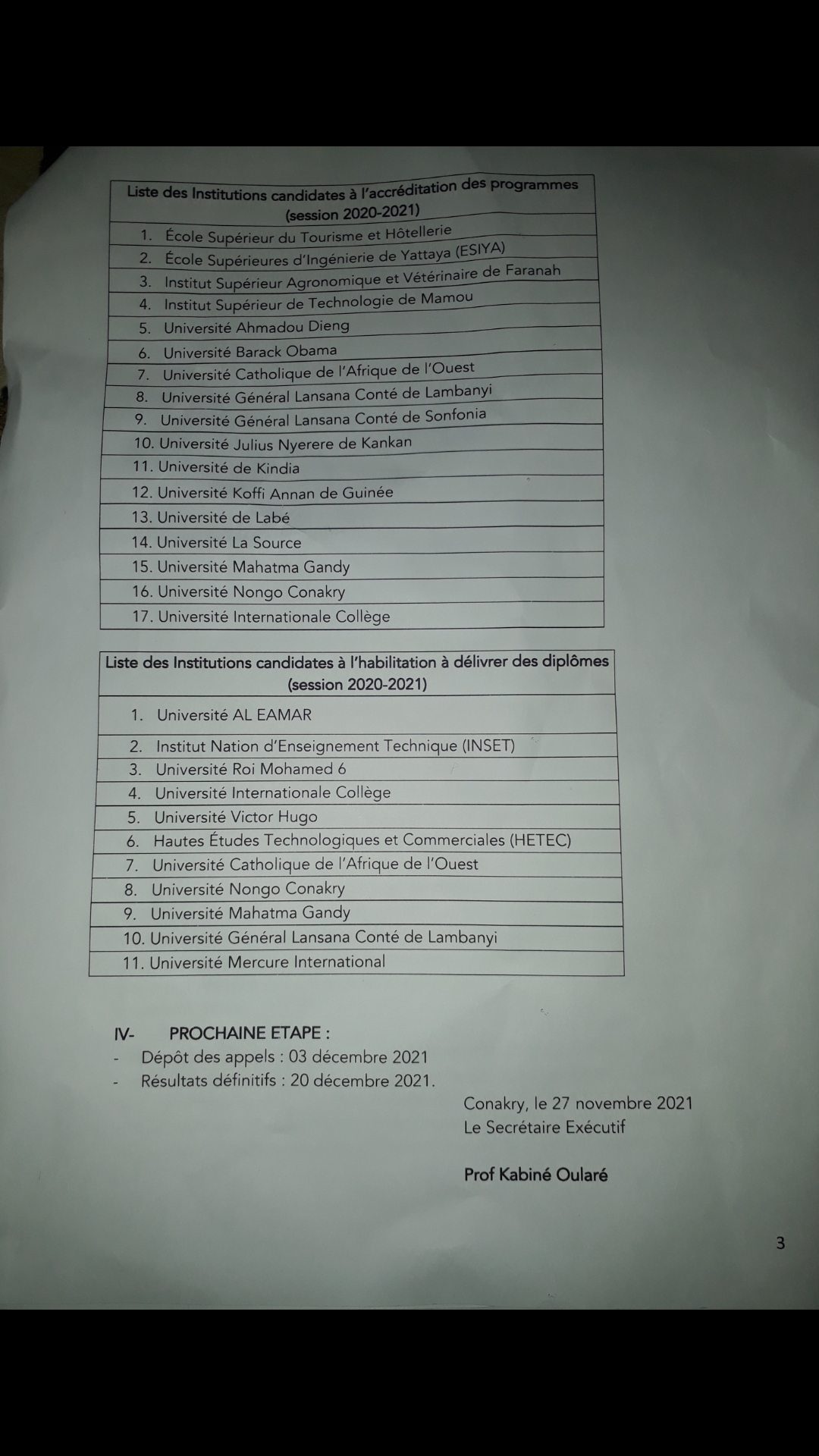 Il souligne que les universités et institutions qui ne sont pas satisfaites des résultats provisoires publiés par le conseil scientifique ont jusqu’au 3 décembre (5 jours ouvrés) pour faire appel afin que ceux qui ont été brimé dans leurs droits soient rétablis.