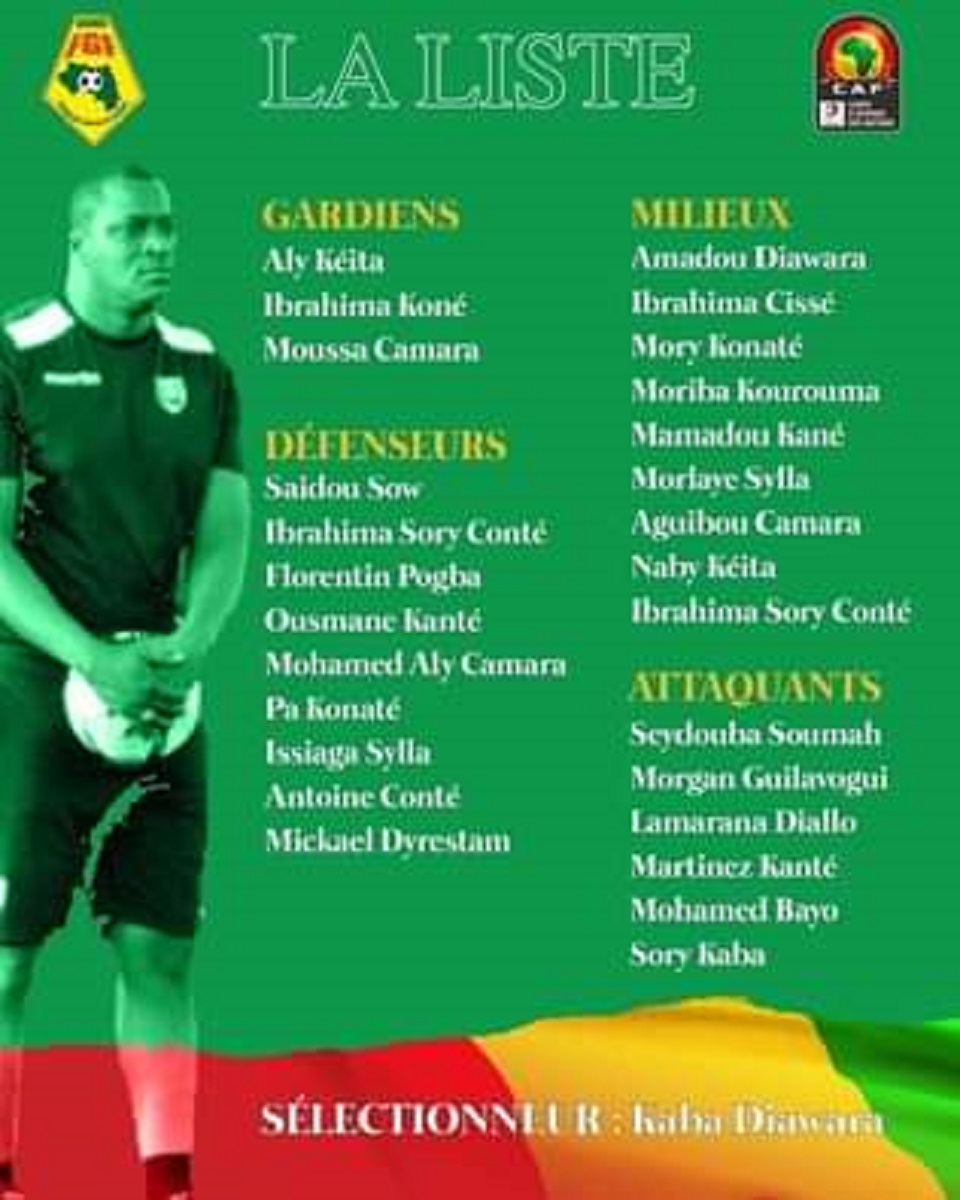Dans le cadre de la phase finale de la 33ème édition de la Coupe d’Afrique des Nations de football prévue du 9 janvier au 6 février 2022 au Cameroun, l’entraineur du Syli national, Kaba Diawara a fait appel à 27 joueurs.