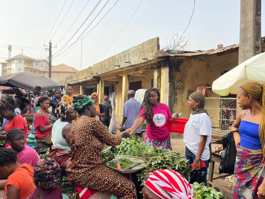 Selon la présidente de l’ONG, pour ce premier contact, à l’occasion de la journée internationale des droits de la femme, »Elles » décide de rencontrer les femmes au foyer pour les soutenir financièrement dans leur achat au marché de Madina Wambélé, une manière pour ces filles de dénoncer la cherté de la vie.