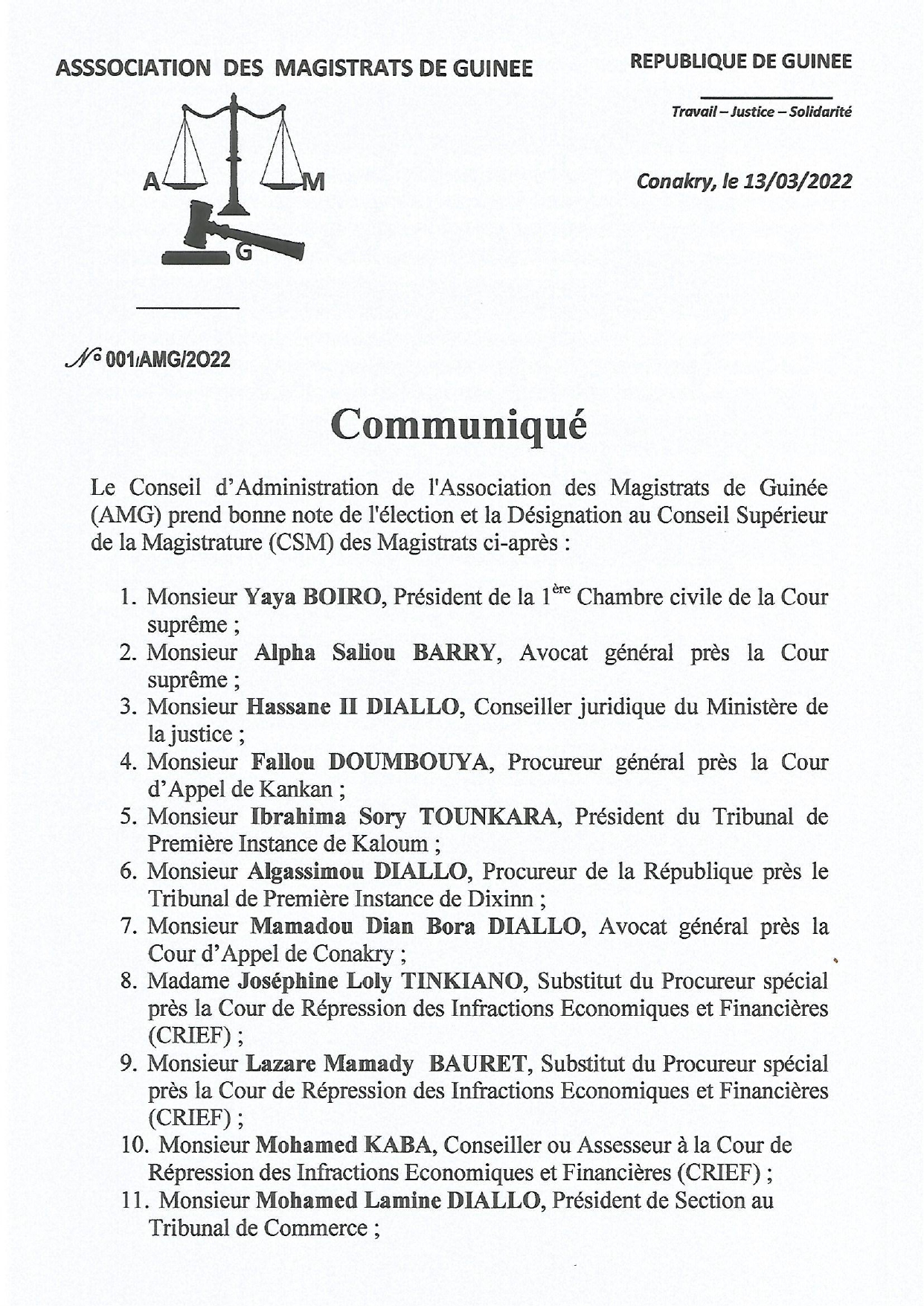 Dans un communiqué dont copie a été transmise à Mediaguinee, le Conseil d’Administration (CA) de l’Association des Magistrats de Guinée (AMG) -présidé désormais par le juge Mohamed Diawara- met en garde contre toute violation des lois qui régissent le Conseil Supérieur de la Magistrature (CSM)…