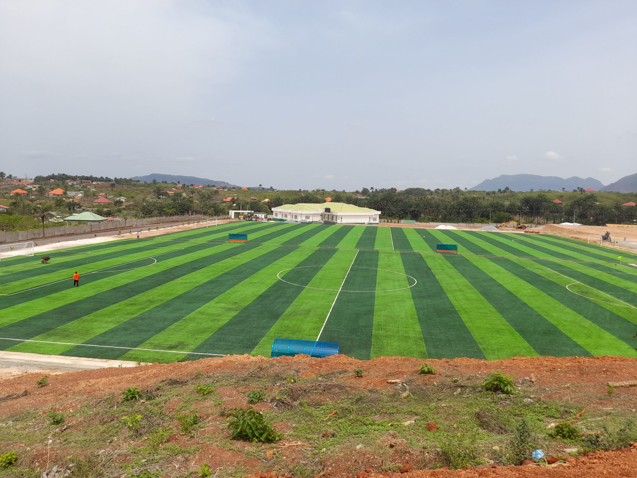 Cette infrastructure est composée de 4 grands bâtiments, une forêt classée, une piscine, 3 terrains synthétiques, 1 terrain gazon naturel, un bloc administratif, un bloc médico-sportif, 14 cabines pour les académiciens dont 02 lits superposés, 18 cabines pour l’équipe professionnelle, 5 vestiaires, 2 réfectoires.