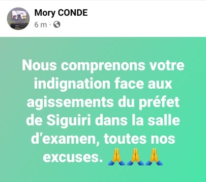Un décret publié ce soir à la télévision nationale a limogé le préfet de Siguiri, le lieutenant-colonel, Ibrahima Douramodou Keita et l’a mis à la disposition de l’armée. Quelques temps avant, le ministre de l’Administration du territoire, Mory Condé avait dit comprendre l’indignation suscitée par le fait de couper les cheveux d’un élève par le préfet dans une salle d’examen. Cette scène devenue virale sur les réseaux sociaux.