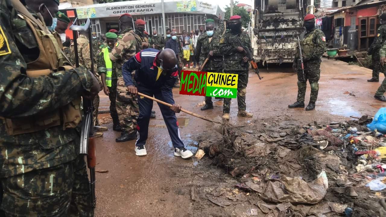Sur instruction du Président de la transition, Colonel Mamadi Doumbouya, les ministres de la défense nationale et de la sécurité et de la protection civile étaient au cœur d’une campagne d’assainissement ce jeudi 14 juillet, dans la commune de Kaloum.