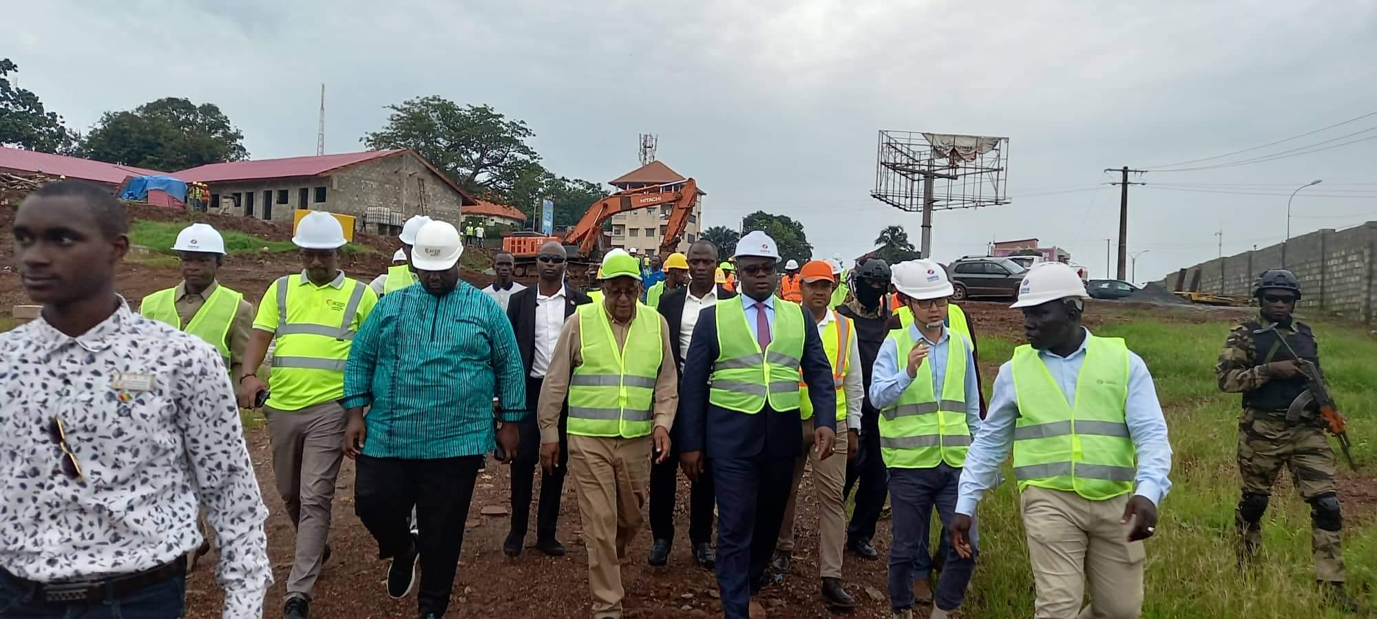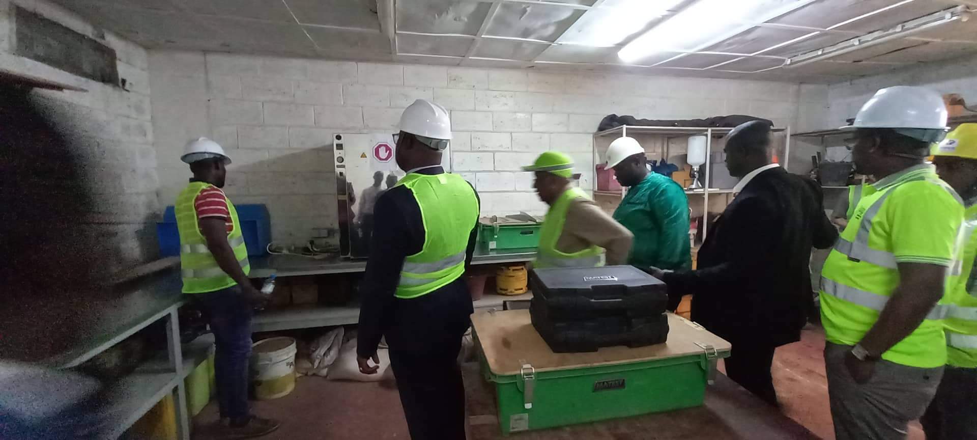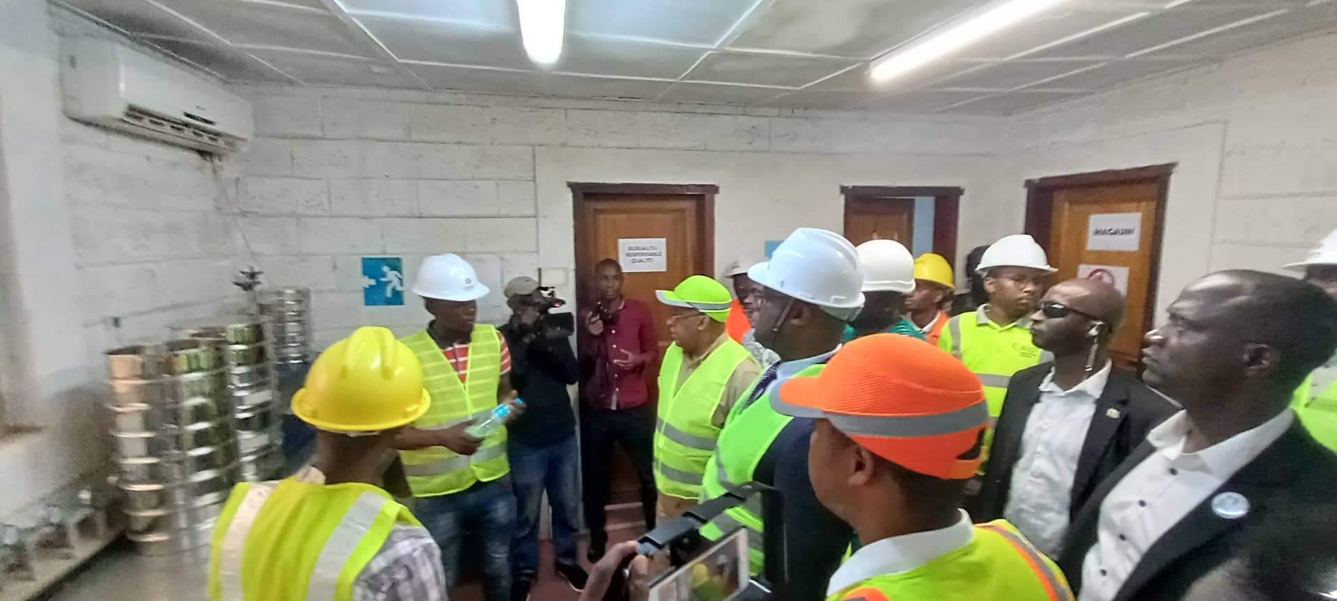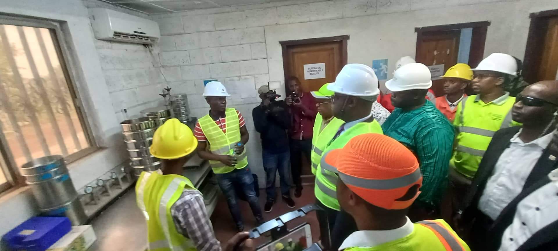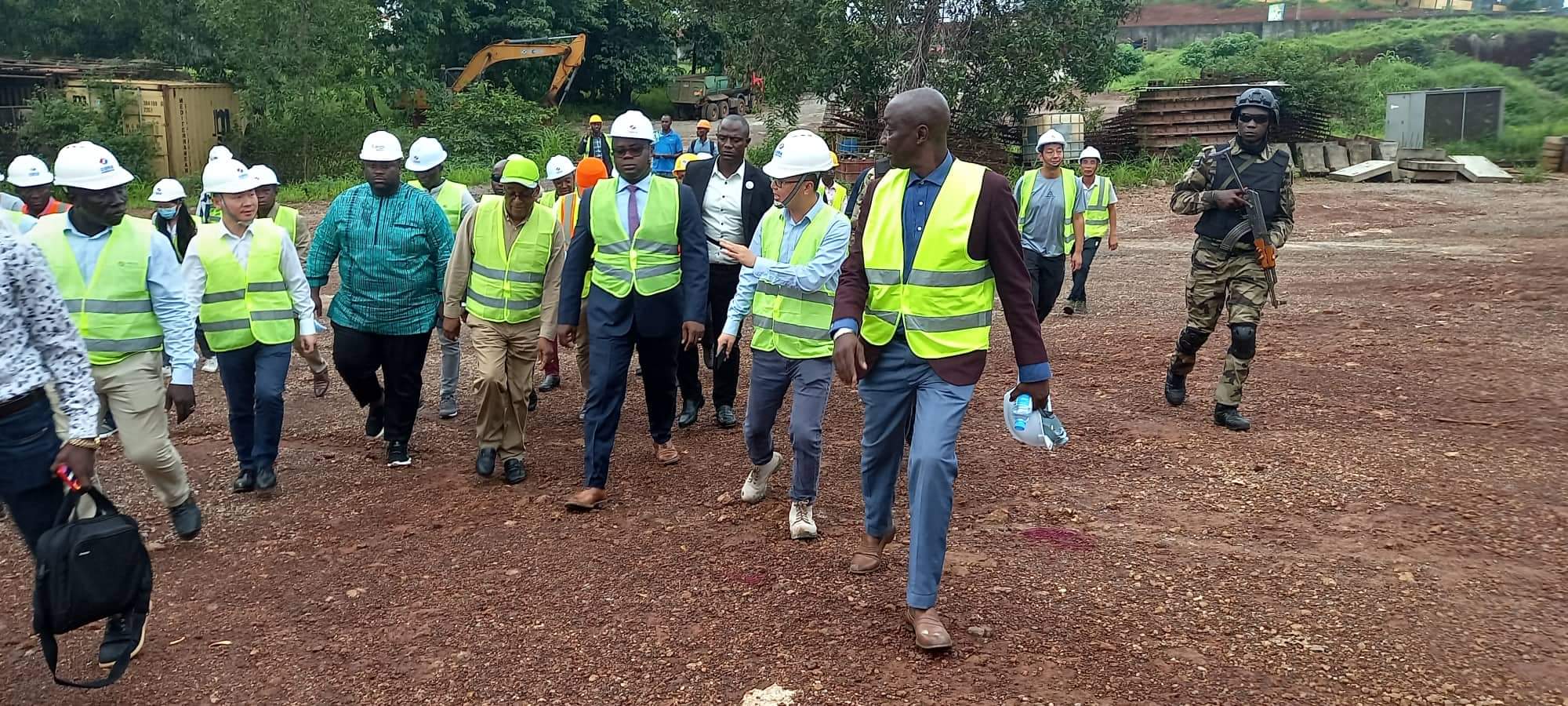 Arrivés sur les lieux aux environs de 17 heures 25 minutes Dr Bernard Goumou et Yaya Sow respectivement Premier Ministre par Intérim et celui des Infrastructures et des transports, accompagnés du Directeur National des Infrastructures ont commencé par visiter la base vie, puis la centrale et le laboratoire.