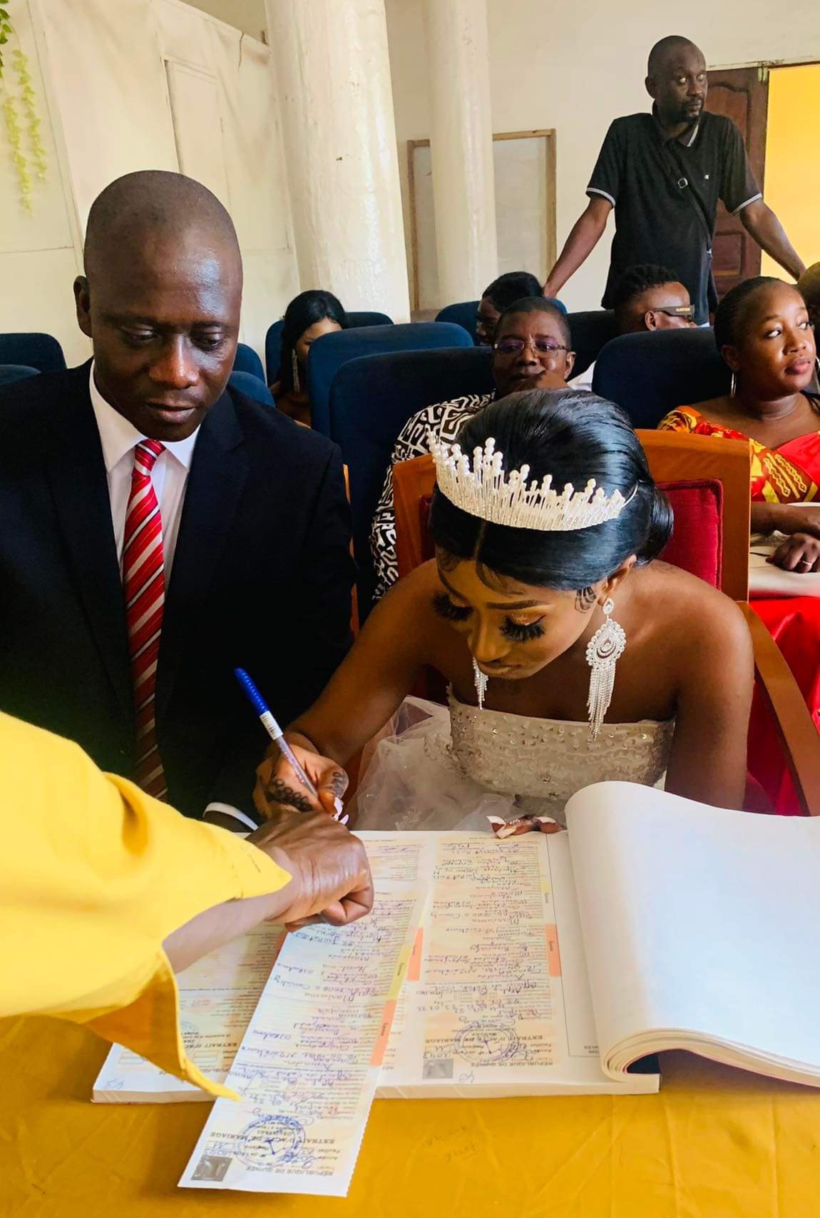 Les deux tourtereaux ont choisi la Mairie de Ratoma, en banlieue de Conakry, pour célébrer lz 23 juillet devant l’officier de l’état civil leur amour. En présence du parrain Sansy Kaba Diakité de L’Harmattan Guinée et de la marraine Fatim Keita.