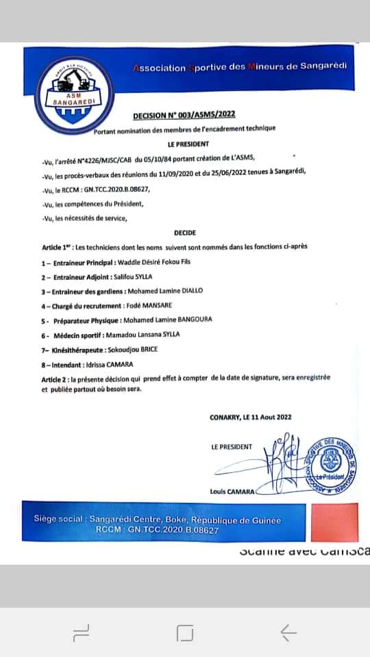 L’article AS Mineurs de Sangarédi : Fodé Mansaré nommé responsable de la cellule de recrutement est apparu en premier sur Guineefoot.